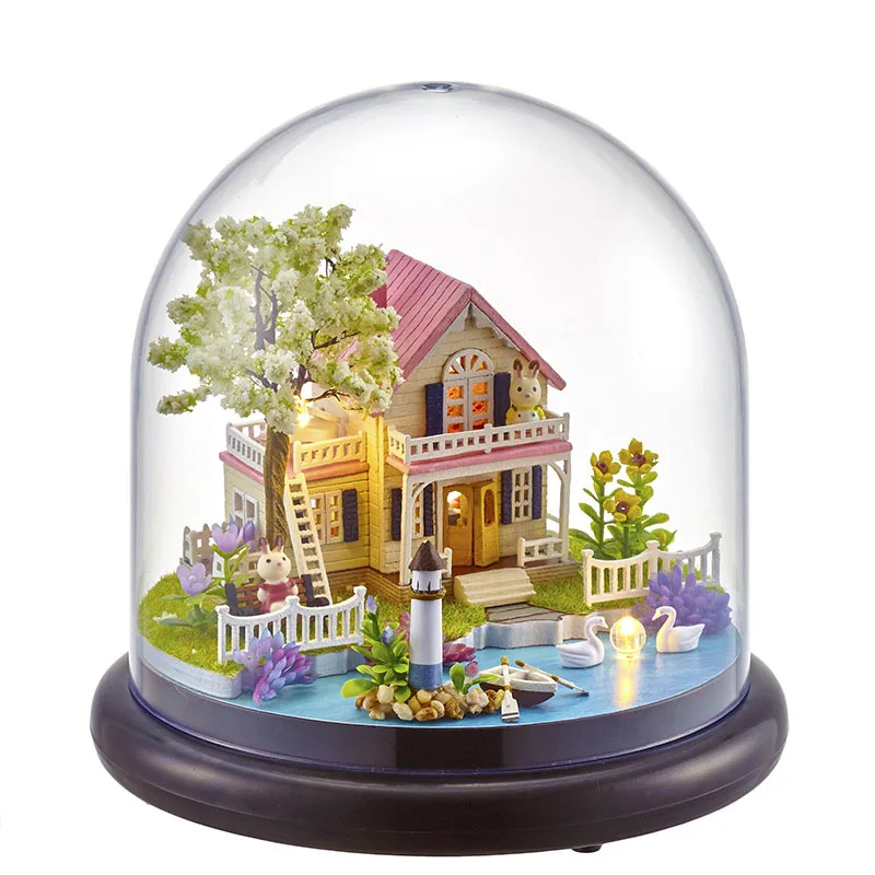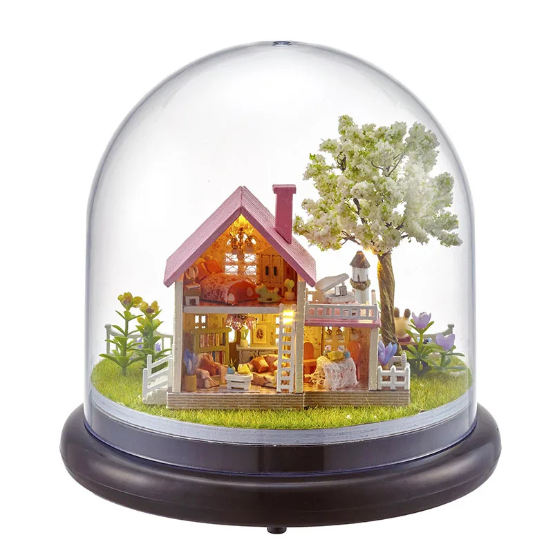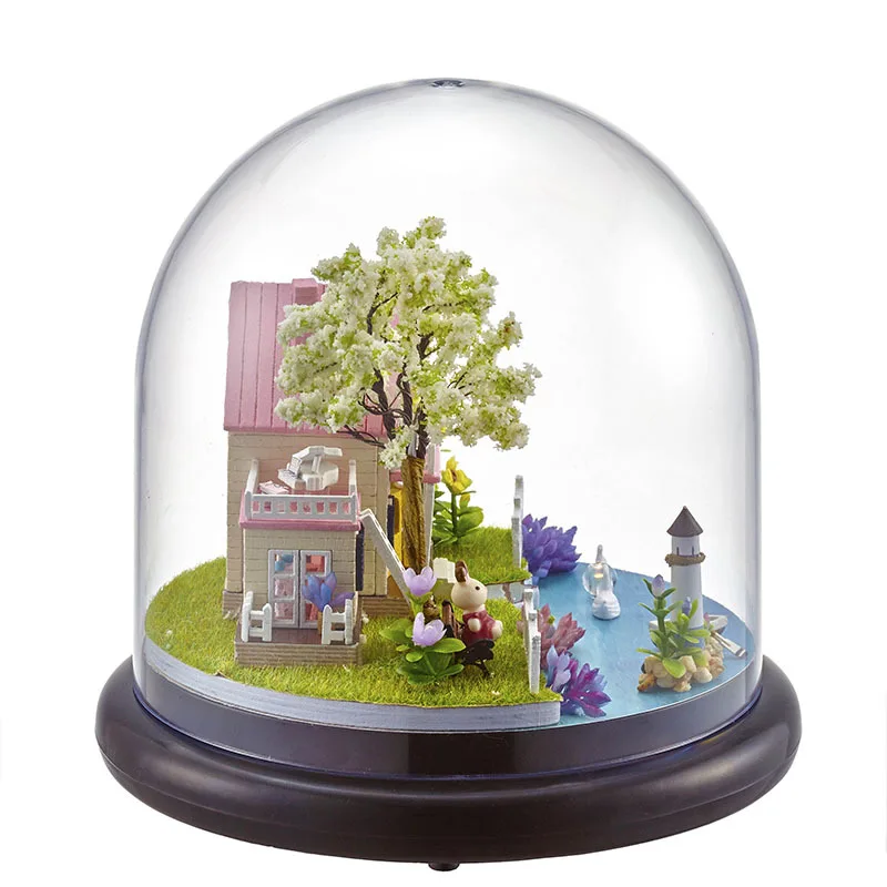 BEST QUALITY B021 Spring Florid DIY Creative Cabin Architecture Model Assembled Mini Miniature Scene Glass Cover