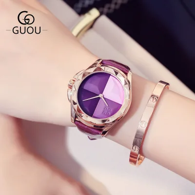Hot Sale New Products reloj mujer 2017 Women's Luxury Brand GUOU Ladies Fashion Dress Watches Women Leather
