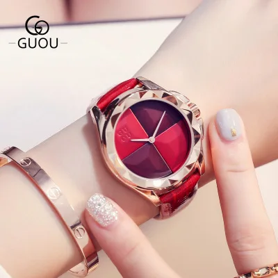 New Products reloj mujer 2017 Women's Luxury Brand GUOU Ladies Fashion Dress Watches Women Leather