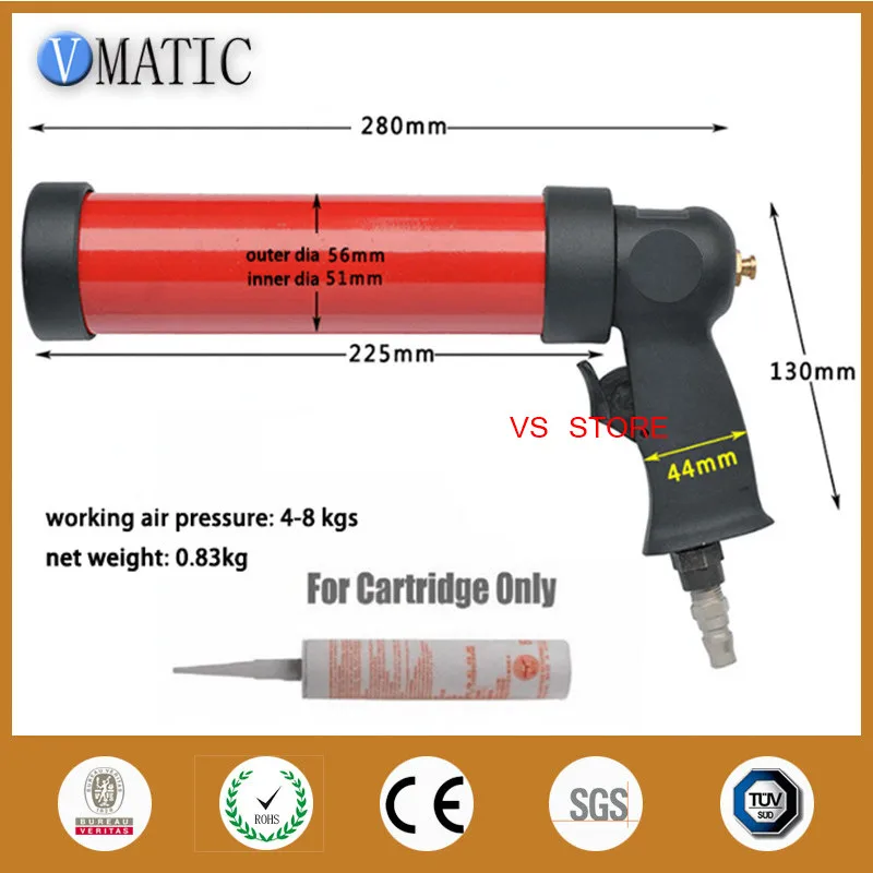 Free Shipping Pneumatic Caulking Glass Glue Gun 310ml/cc 1Pc + Cartridge 1Pc