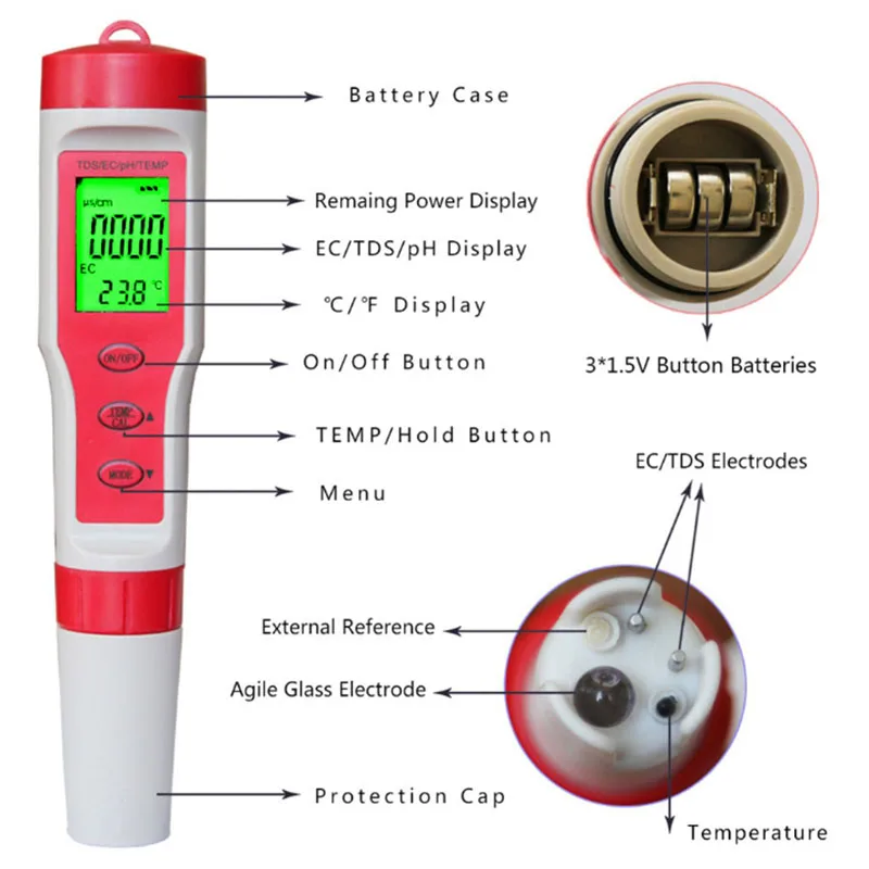 HIGH QUALITY Tds Ph Meter Ph/Tds/Ec/Temperature Meter Digital Water Quality Monitor Tester For Pools Drinking Wa
